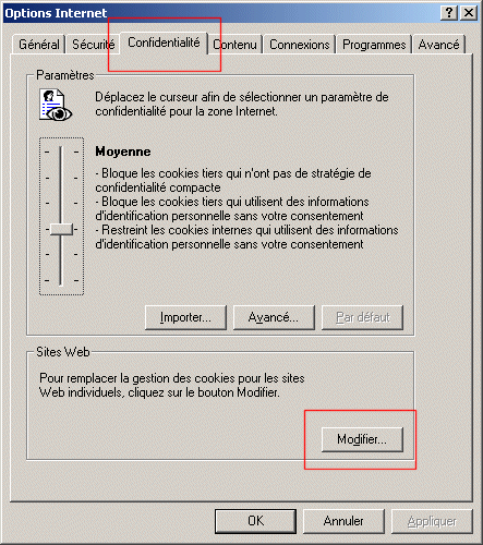 Dans la fenêtre qui s'est ouverte, Choisir l'onglet "Confidentialité", et cliquer le bouton "Modifier".